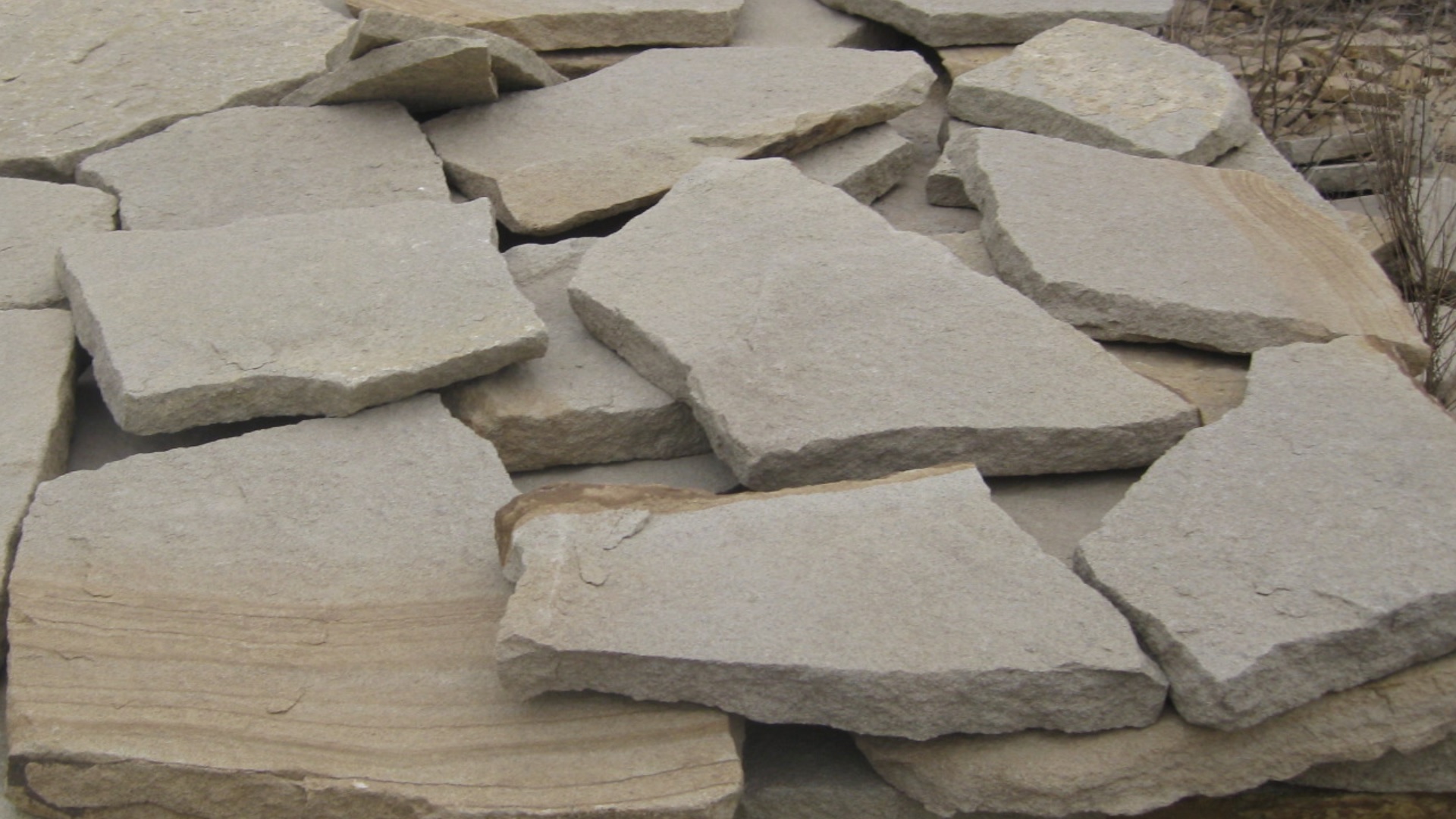 • Kamenclub.ru: Песчаник пластушка светло-серый (2,0 см)  купить в Балашихе плитняк- ластушка светло-серый, серый рваный ландшафтный плитняк колотый 13800 руб/м3   фото КАМЕНЬ КЛУБ